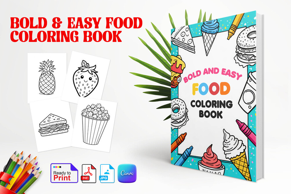100 Bold and Easy Food Coloring Pages | Printable Kids Activity Book | Fun Food Theme
